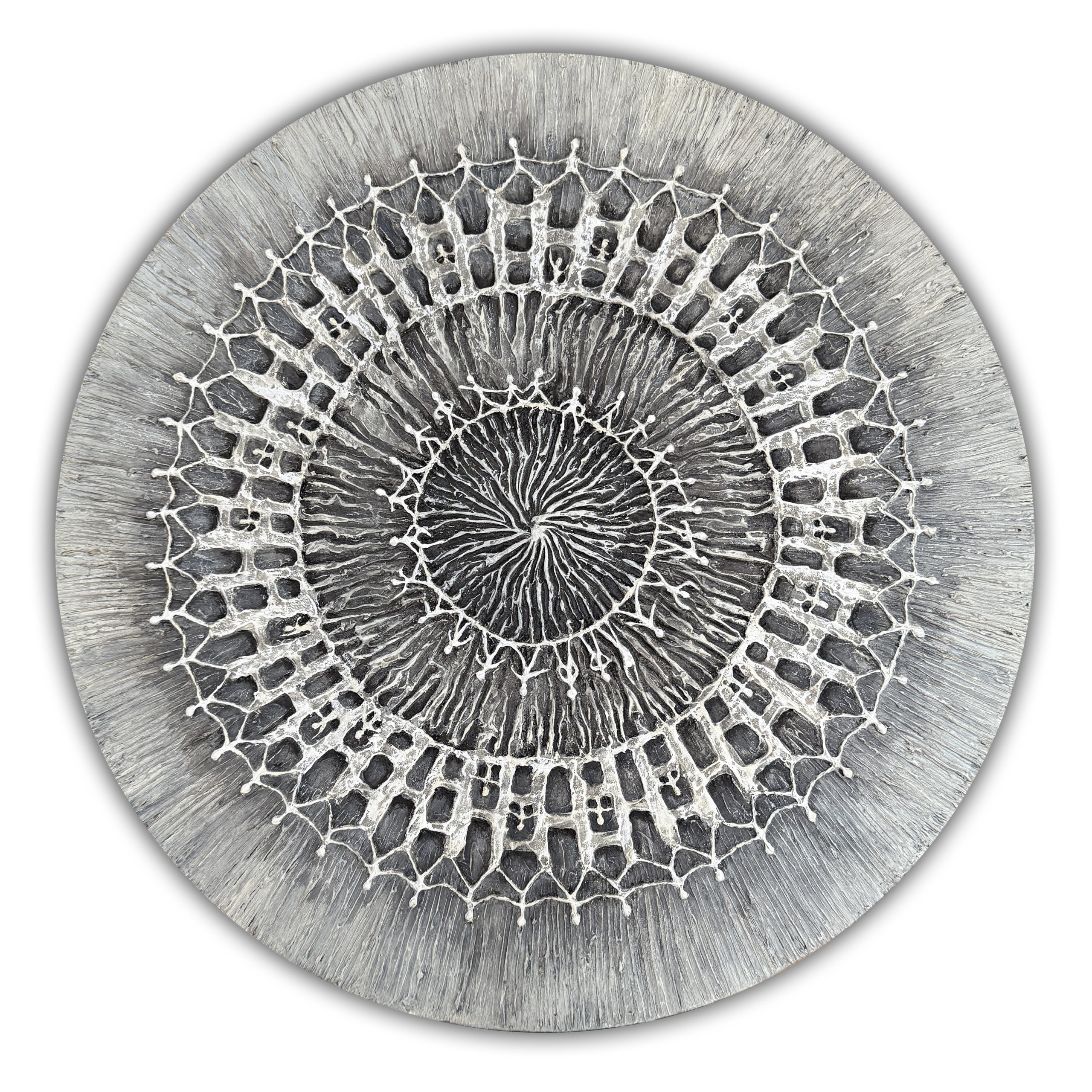 Acrylique sur bois - Format 46x46- Cette œuvre est une exploration profonde de la connexion universelle. En mêlant le sable et l'acrylique, j'ai voulu capturer la texture brute de notre lien humain, tandis que les formes abstraites et géométriques symbolisent notre interconnexion. Chaque détail est une invitation à ressentir l'énergie vibrante qu'elle dégage, apportant à votre espace une force apaisante et mystérieuse.
