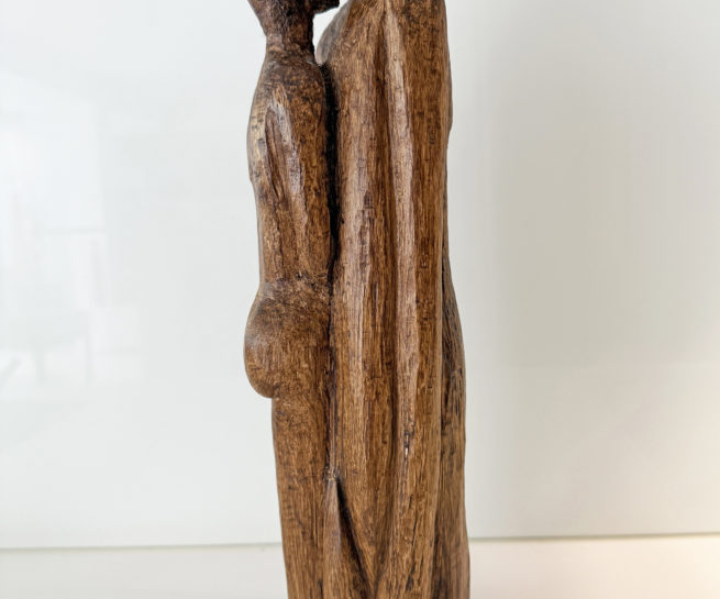 Sculpture sur bois - Format 41x13x11 - Cette sculpture en bois incarne l'intimité et la connexion profonde entre deux êtres. J'ai voulu capturer la tendresse et la simplicité d'un instant partagé, où les formes épurées dégagent une émotion pure. Cette pièce apportera à votre intérieur une énergie chaleureuse, empreinte d’humanité et de douceur, comme un souffle silencieux rappelant l'importance du lien et de la présence.