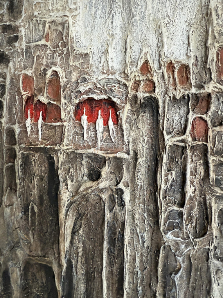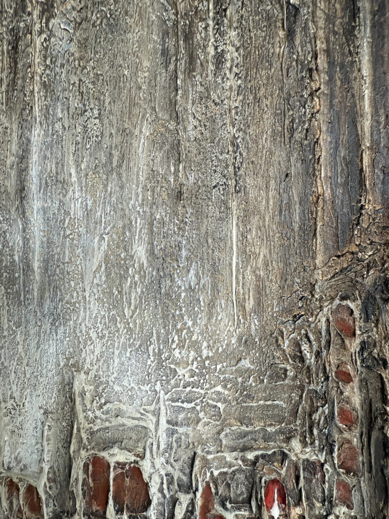 La matière, dense et texturée, donne à l’œuvre une présence à la fois brute et sensible, invitant le regard à explorer ses profondeurs.