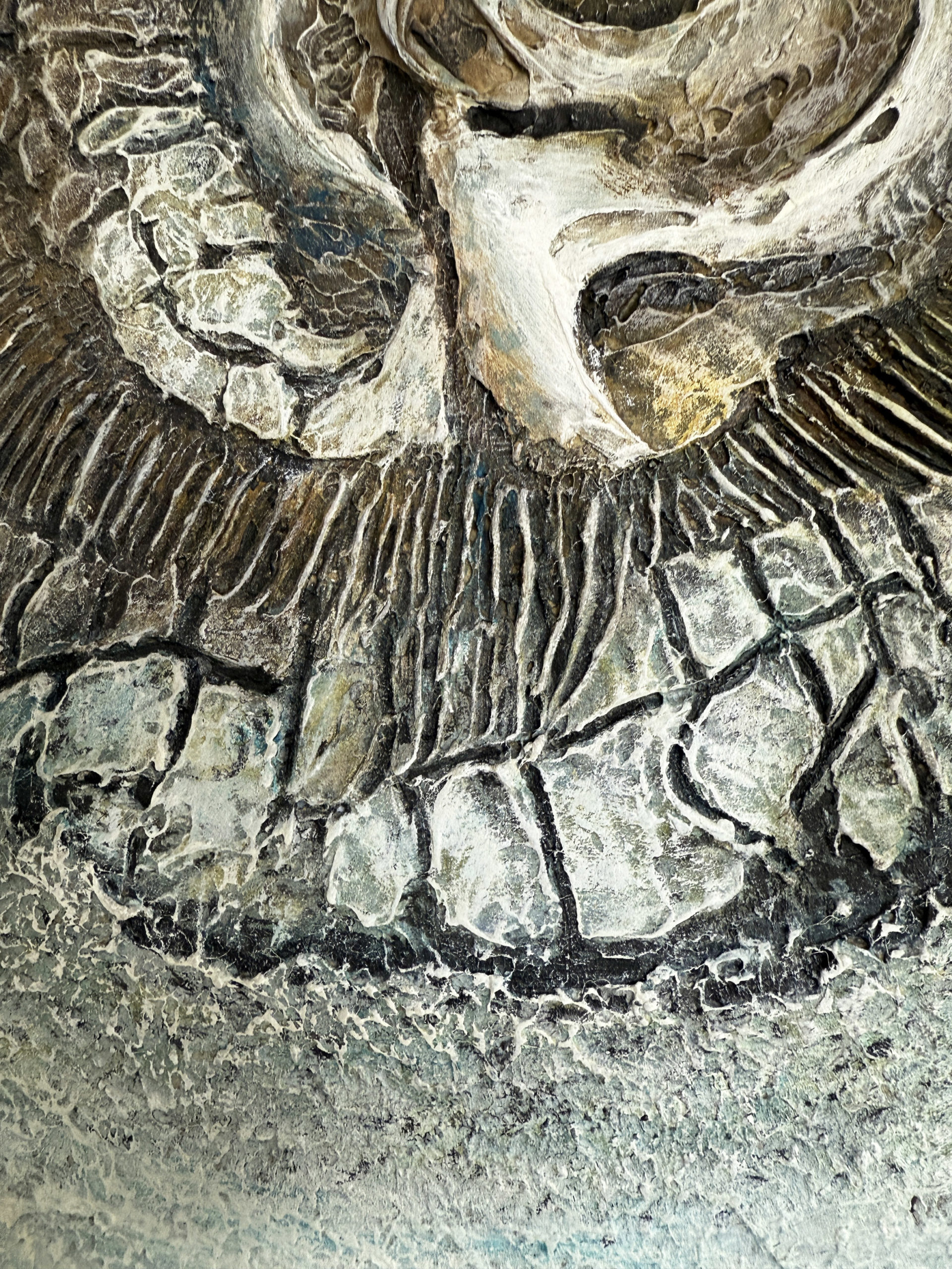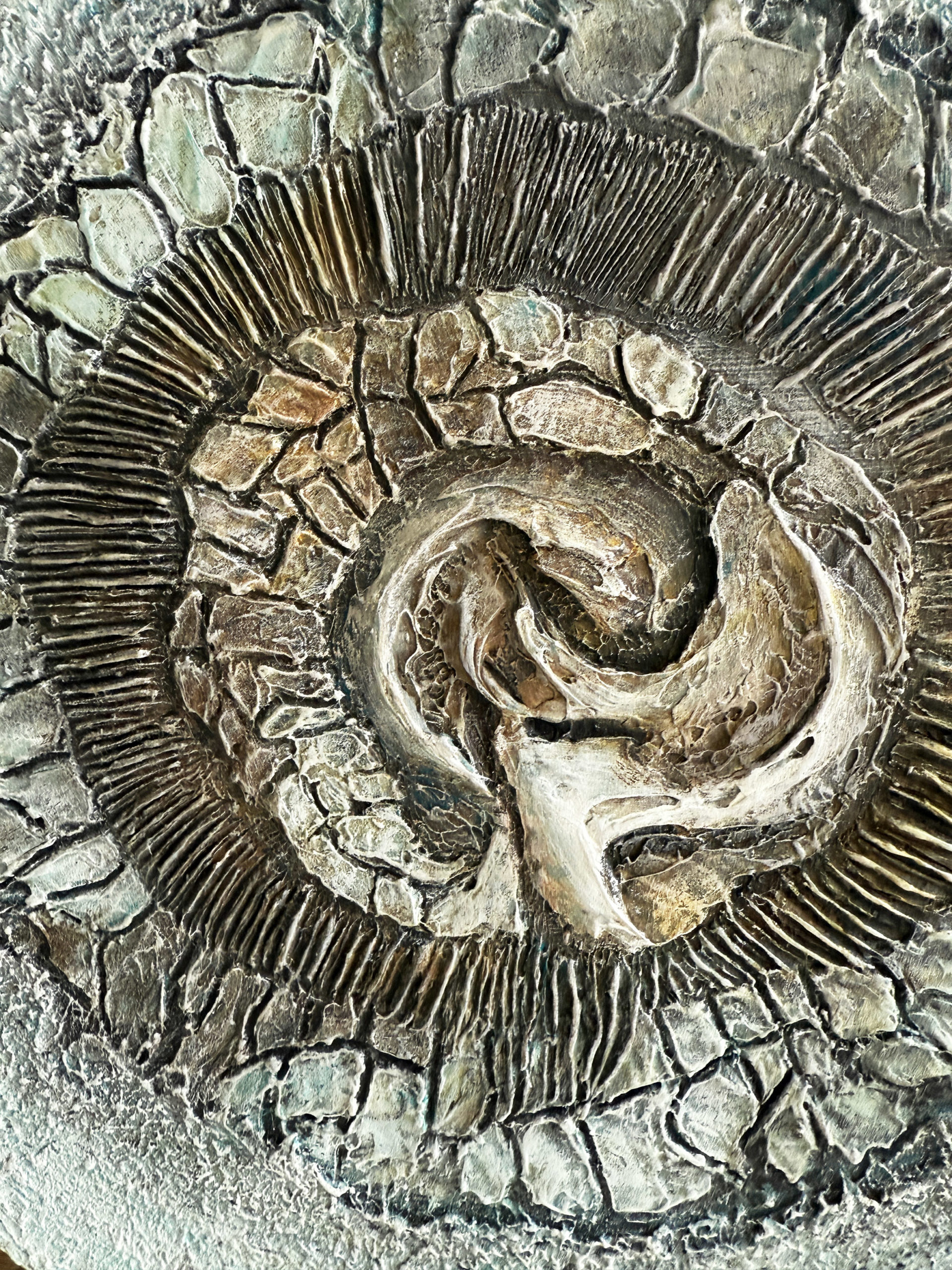Dans cette œuvre, j’explore une matière en formation, comme un fragment de nature en train de se construire.