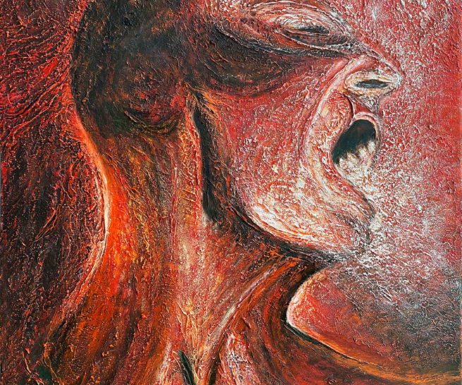 Acrylique sur toile - Format 73x91- Un cri comme une émotion. Dans cette œuvre, j'ai créé un tableau puissant qui saisit l'intensité brute des émotions humaines. Le style abstrait côtoie le réalisme et l'expressionnisme, capturant un moment de cri symbolique qui résonnera dans l'esprit du spectateur. Chaque coup de pinceau est imprégné d'une passion ardente, et les couleurs vives transportent un message de force et de résilience. Cette pièce est une célébration vibrante de l'expression humaine qui ajoutera dynamisme et profondeur à tout espace.