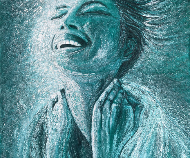 La joie - Acrylique sur toile - Format 73x92. La joie, comme une émotion. Dans cette œuvre, j'ai cherché à capturer l'essence de l'épanouissement humain, associant abstraction et symbolisme pour évoquer la joie pure. Avec la richesse de l'acrylique, l'huile et la texture du sable, chaque coup de pinceau est une célébration vibrante de la vie. Les nuances de bleu et de turquoise se mélangent pour créer une atmosphère onirique où l'expression réaliste du sujet devient le symbole universel du bonheur incommensurable. Cette peinture apportera une énergie contagieuse à tout espace, invitant à l'optimisme et à la sérénité.