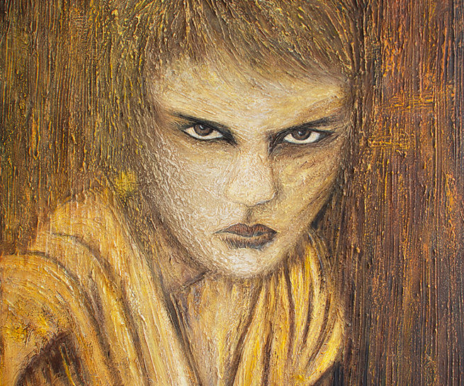 Le dépit - Acrylique sur toile - Format 73x92. Le dépit, comme une émotion, une déception, une blessure intérieure, une amertume... Dans cette œuvre, j'ai exploré la profondeur de l'émotion humaine, en s'appuyant sur l'abstrait, l'expressionnisme et le réalisme. Les traits impétueux mélangés d'acrylique, d'huile et de sable façonnent l'image, reflétant un sentiment de défi et d'introspection. Chaque coup de pinceau raconte une histoire de lutte intérieure, offrant à celui qui regarde une fenêtre sur l'âme. C'est plus qu'une peinture; c'est un dialogue silencieux avec le spectateur.