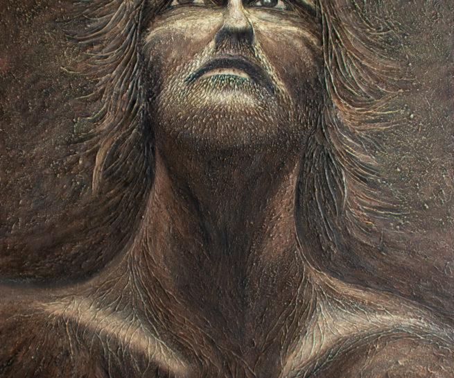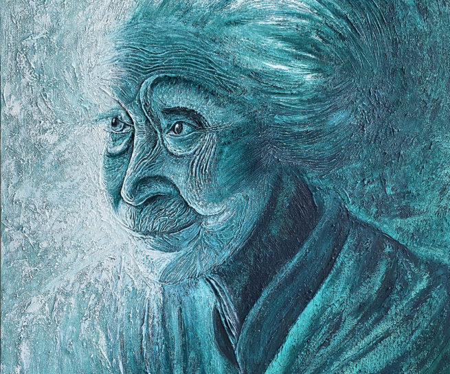 La Nostalgie - Acrylique sur toile - Format 73x92. Mon œuvre mêle l'abstraction et le réalisme avec une touche de symbolisme pour explorer les profondeurs de l'émotion humaine. En utilisant l'acrylique et le sable, j'ai créé des textures riches qui captent la complexité de l'expérience humaine. Ce portrait, au regard profond et à l'aura presque mystique, invite à la réflexion sur la nostalgie d'une vie, sur la sagesse et les épreuves traversées par l'âme. Il promet d'apporter une énergie contemplative et enrichissante à tout espace de vie.