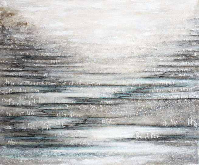 Acrylique sur toile - Format 80x60 - Une œuvre abstraite - Un territoire où les hommes sont reliés et avancent vers un même but : la profondeur de la vie. Une peinture conceptuelle faite de relief et de lumière. Dans cette œuvre, j'ai façonné un paysage abstrait où chaque coup de pinceau est une émotion. J'ai mélangé l'acrylique et le sable pour créer une texture riche faite de relief et de profondeur, invitant à la contemplation. Cette peinture est le reflet d'un territoire intérieur, une cartographie de l’âme qui évoque la connexion.